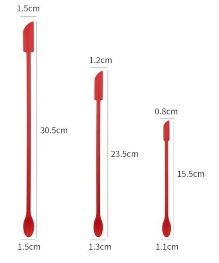 - →Different Sizes: The premium rubber spatulas in 3 different sizes, including 12 inch(1pcs), 9 inch(1pcs) and 6 inch(1pcs), suitable for different sizes of bottle mouth, Small mini-spatula but long.