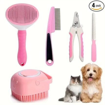 SUPER 1 Set (4pcs) Pet Grooming Kit, Dog Hair Remover Comb