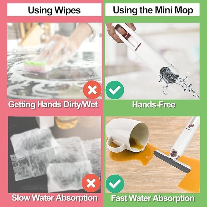 QONETIC Mini Mop for Kitchen with Sponge Portable Mini Mop Self Squeeze