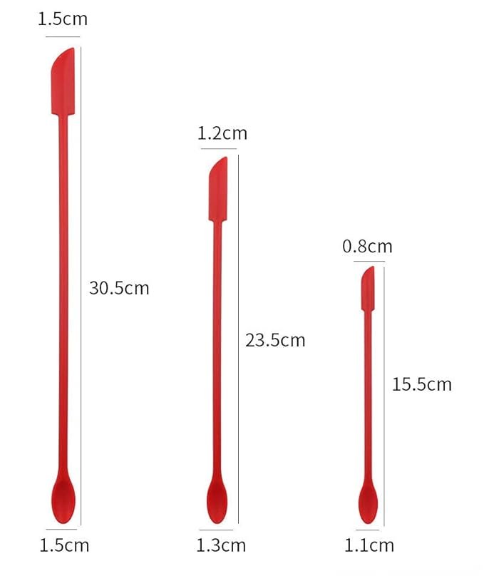• →Different Sizes: The premium rubber spatulas in 3 different sizes, including 12 inch(1pcs), 9 inch(1pcs) and 6 inch(1pcs), suitable for different sizes of bottle mouth, Small mini-spatula but long.