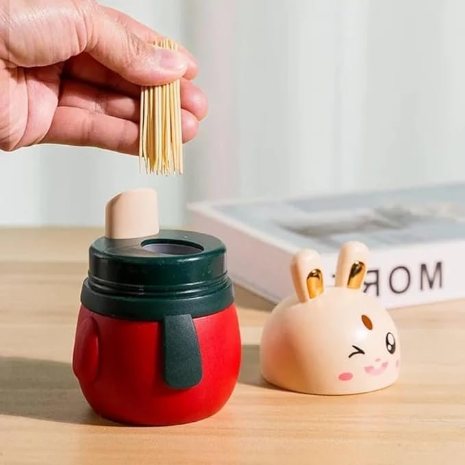 - 👆 One-Press Easy Operation – With a simple one-press mechanism, you can get a single toothpick without touching the rest, reducing contamination. Just press the bunny’s head, and a toothpick pops out instantly, making it mess-free and convenient.