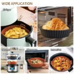 • Reusable air fryer silicone pots can replace other air fryer pans or disposable parchment paper. The carefully designed 360°air circulation structure makes the heat distribution more uniform so that your food can be cooked perfectly in a shorter time & no more risk of flammability.